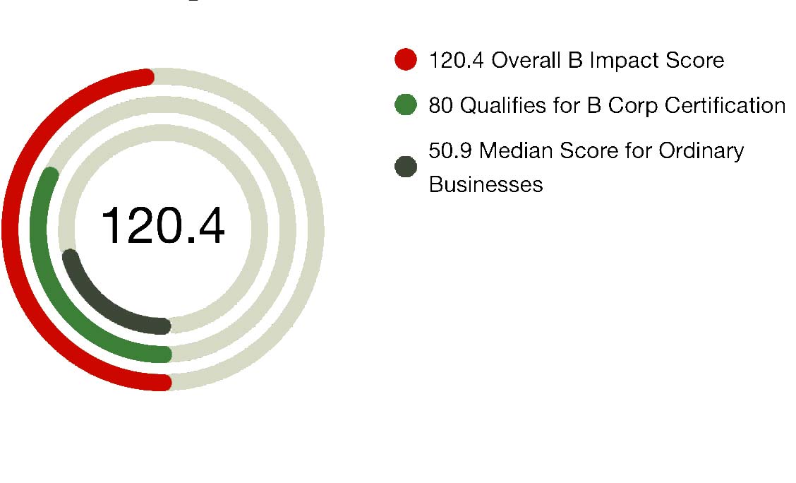 Based on the B Impact Assessment, Bennetto Natural Foods earned an overall score of 120.4 points. This means we’re a ‘high-scoring B Corp’ as 80 points are needed to qualify. The median score for most businesses who complete the assessment is currently 50.9. So here is how we did it: