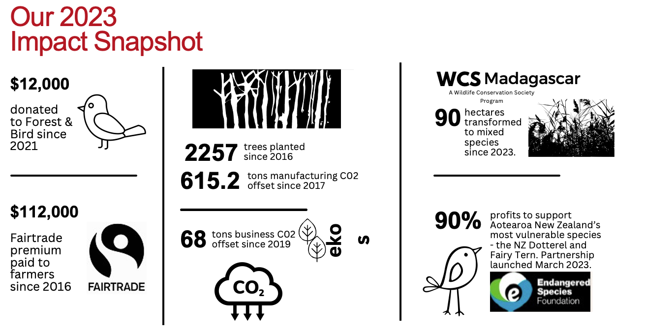 4. Through charitable partnerships: We donate 100% of profits from our Original Dark 60% bar to the Forest and Bird Society of New Zealand, which supports endangered birds annually. Additionally, 10% of profits from our drinking chocolate go to the Endangered Species Foundation in New Zealand.